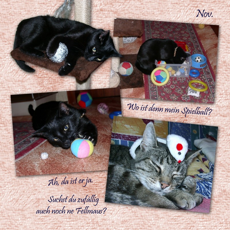 Zusammenstellung der besten Bilder aus dem Jahr 2004 unserer Katzen als Fotobuch.