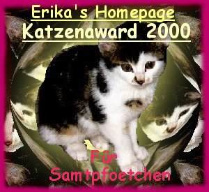 29. Juli 2000 "Hallo Ihr kleinen Samtpfötchen !!! Euch verleihen wir doch GERNE einen Award !" |