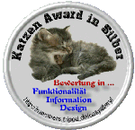 1. März 2001 "die Katzen Gallery verleiht euch für eure schöne HP den Award in Silber. Herzlichen Glückwunsch!" |