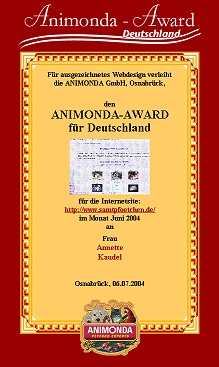 6. Juli 2004Für ausgezeichnetes Webdesign verleiht die ANIMONDA GmbH, Osnabrück,
